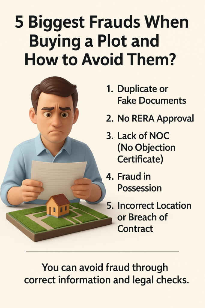 भारत में प्लॉट खरीदना एक बड़ा निवेश होता है। लेकिन अक्सर लोग बिना सही जानकारी के फैसले ले लेते हैं और धोखाधड़ी का शिकार हो जाते हैं। यहाँ हम बता रहे हैं 5 सबसे कॉमन फ्रॉड और उनसे बचने के आसान उपाय।